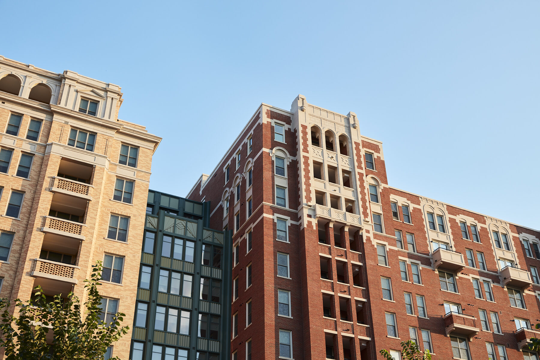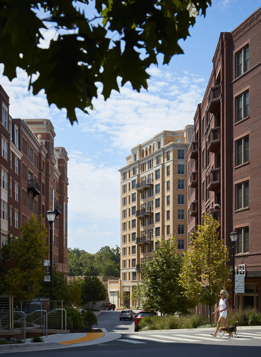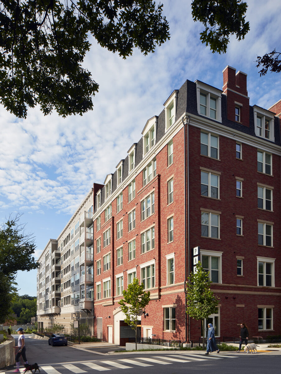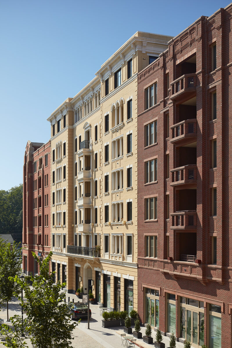 The architecture draws inspiration from the historic early 20th century apartment houses found along Connecticut Avenue. Exteriors are characterized by traditional forms, well-studied detailing, and timeless materials. Facades were carefully varied to create the appearance of nine distinct buildings across three cohesive blocks, earning community support while honoring Connecticut Avenue’s architectural heritage.