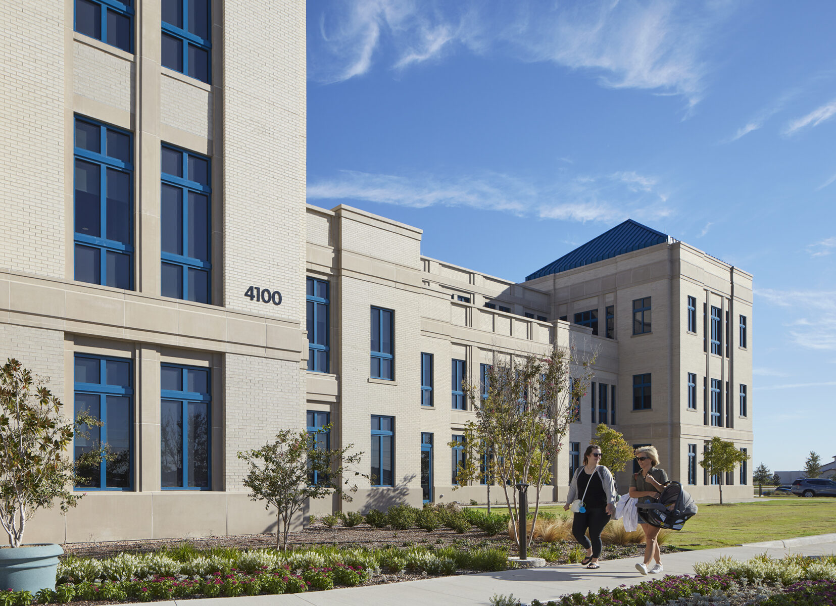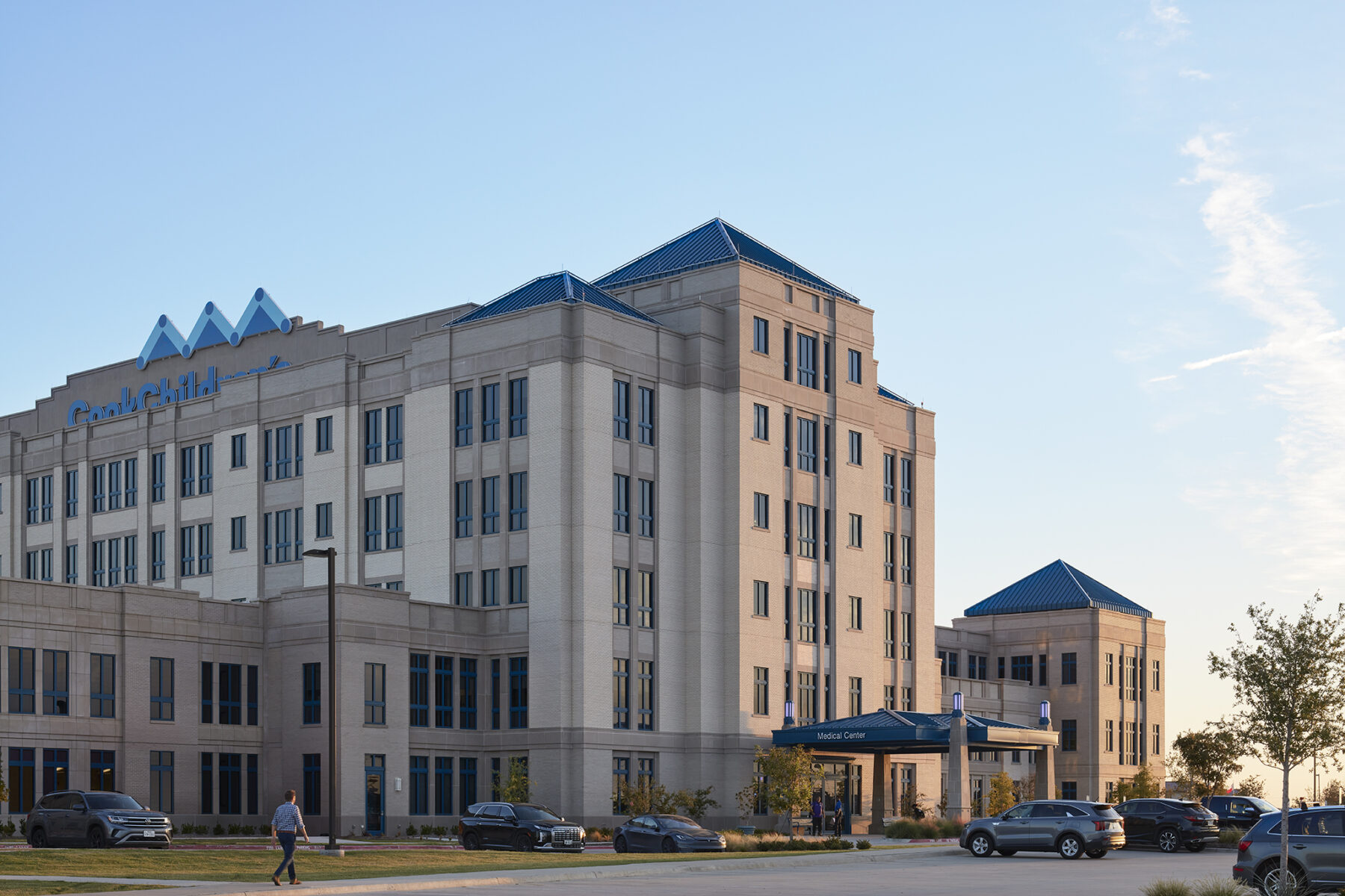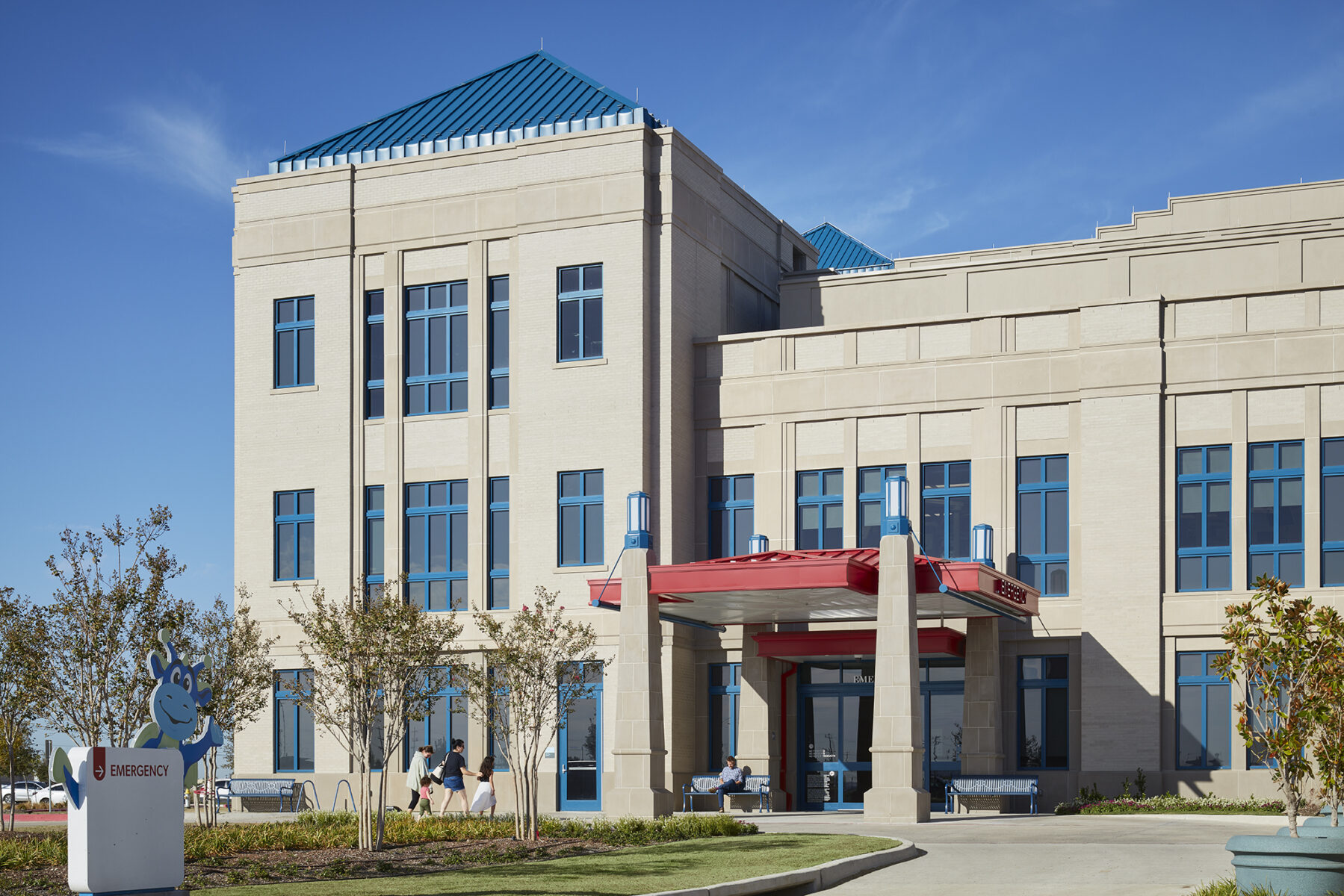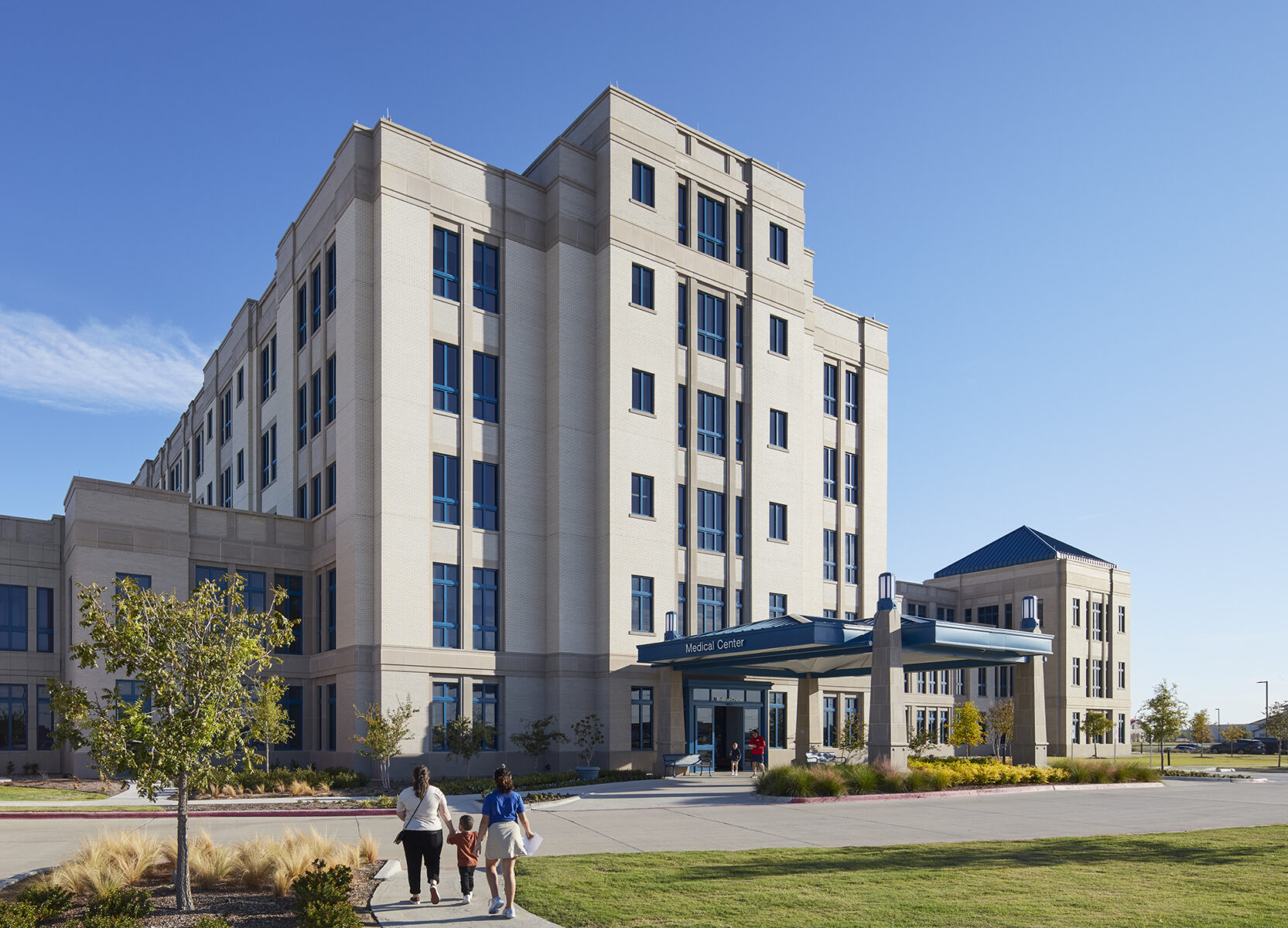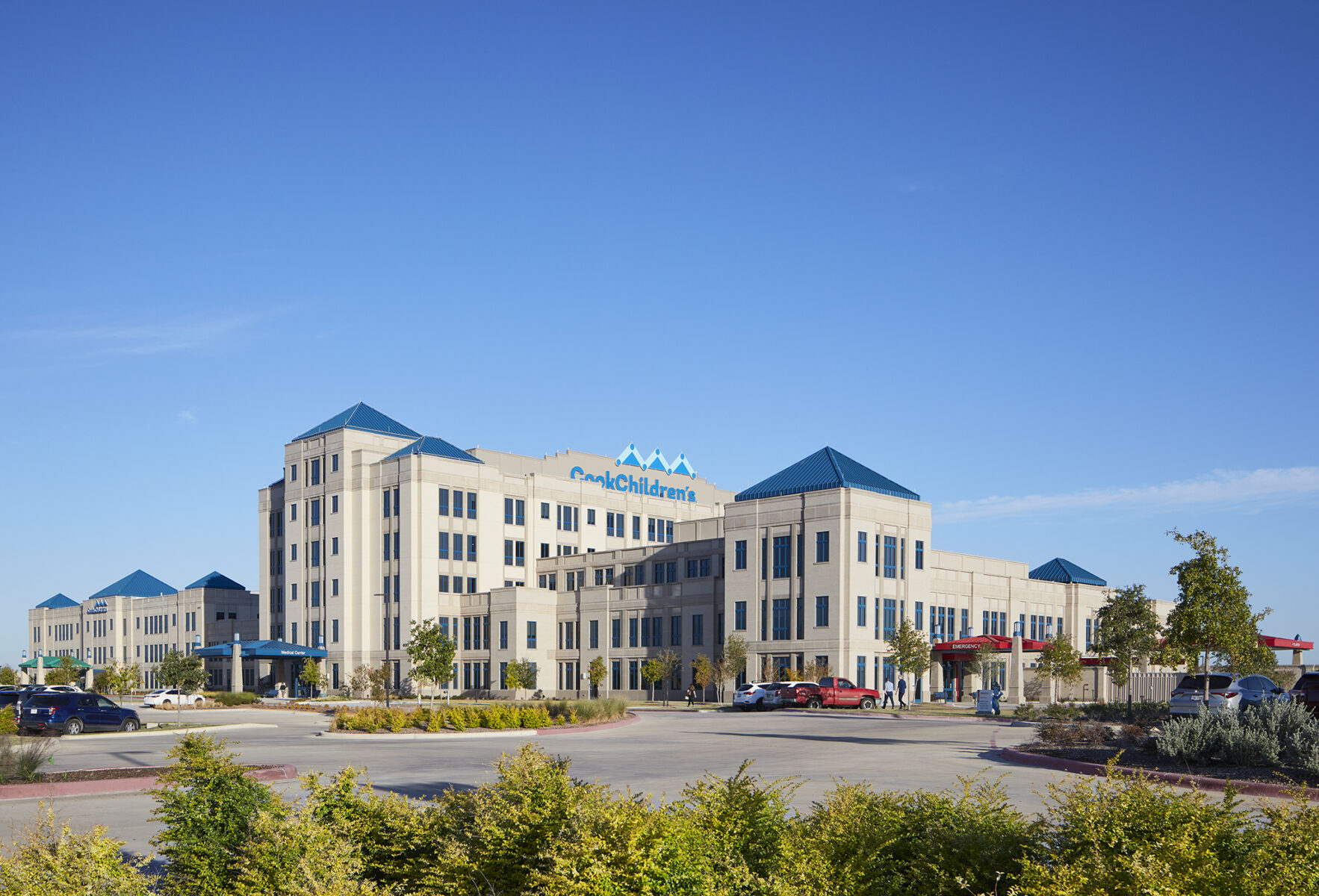 Cook Children’s Medical Center Prosper Hospital is a 210,000 SF hospital addition to the existing Medical Office Building on the Prosper campus, connected via a two-story link. The facility is supported by on-grade parking and a helipad located at the northeast corner of the site. Cook Children’s primary goal for the project was to establish an early presence in Prosper, initiating development ahead of other providers to lead the market and capitalize on the area’s rapid growth. The hospital includes a Level 1 Emergency Department and Level 2 Operating Rooms with associated support spaces, while a three-story patient tower (Levels 3–5) houses private patient rooms sized to efficiently support patient care and clinical services.