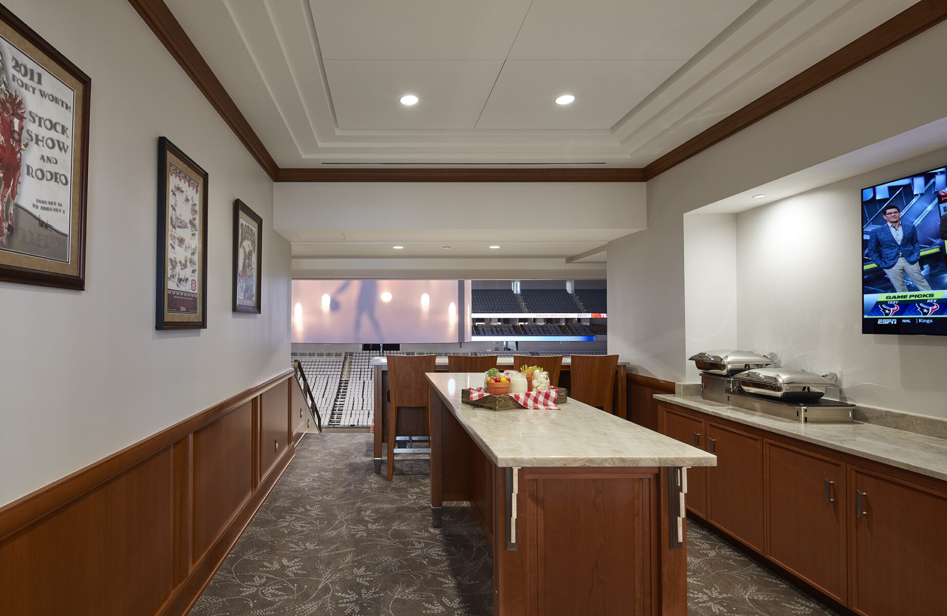 Beyond the much beloved Stock Show & Rodeo, Dickies Arena is designed to host hockey, family shows, NCAA regulation basketball tournaments and concerts. Its flexible, three-level seating bowl provides 9,000 seats for rodeo, with capacity increasing to 14,000 for center stage concerts. Dickies Arena includes two premium entertainment clubs located near the north and south entrances, two party suites, 36 suites, 32 loge boxes, arena rigging to accommodate modern entertainment shows, 75 concession points of sale and the latest in fan entertainment and communication technology.