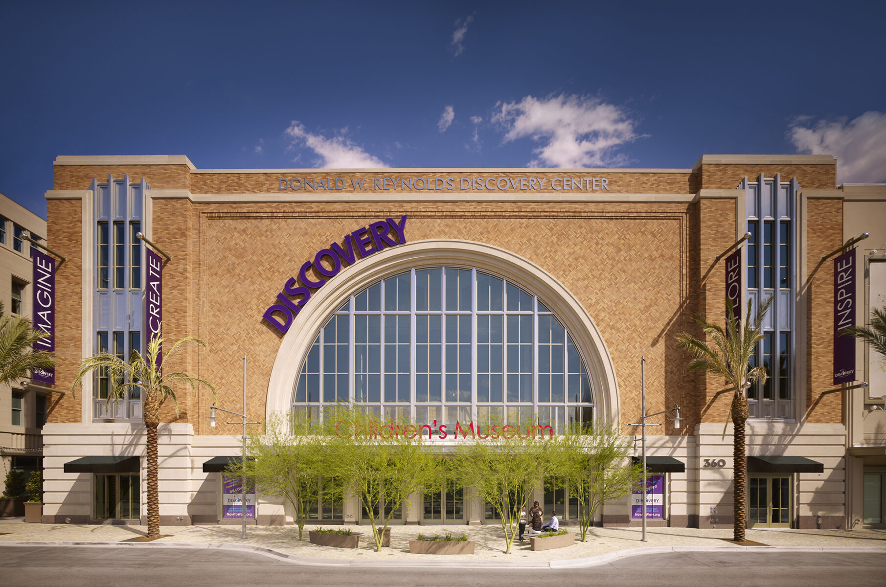 The Discovery Children’s Museum’s exterior was completed in time for the opening of the adjacent Reynolds Hall and Boman Pavilion in March 2012. The museum itself became fully operational and open to the public a year later. The Discovery Children’s Museum, like the other two venues on the campus, was planned and designed to achieve LEED Certification or better.
