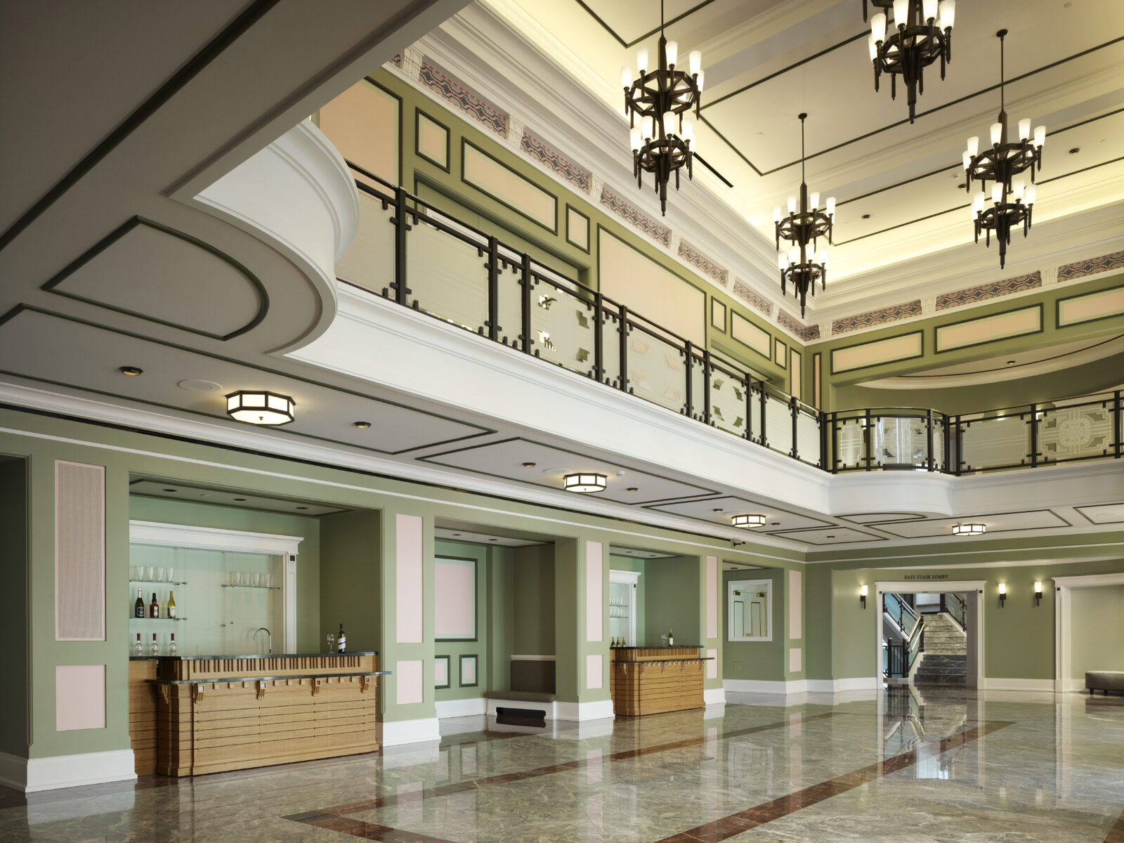 The Palladium at the Center for the Performing Arts is the focal point of a large, new construction, mixed-use city center development project comprised of office, retail, residential and hotel uses.